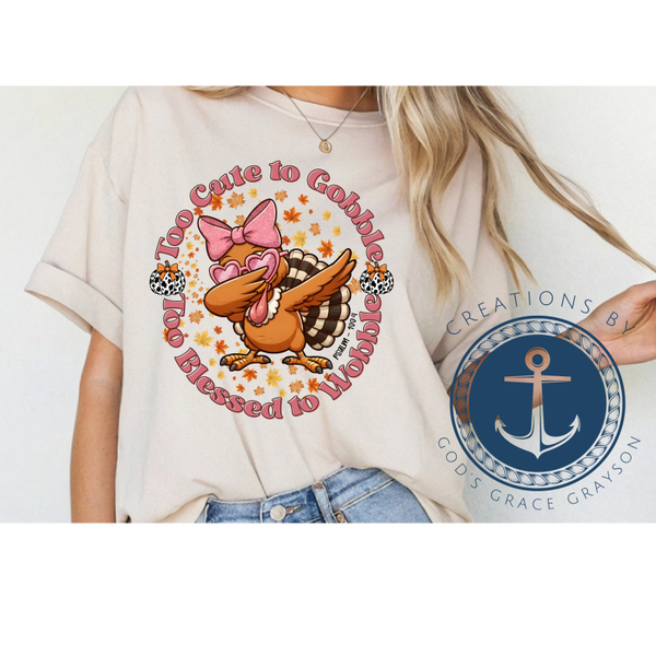 Thanksgiving Shirt or Sweatshirt | Too Cute to Gobble Too Blessed to Wobble | Turkey Fall Shirt for Women Kids | Family Holiday Outfit